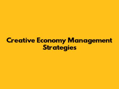 Creative Economy Management Strategies