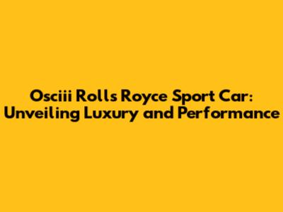 Osciii Rolls Royce Sport Car: Ultimate Guide