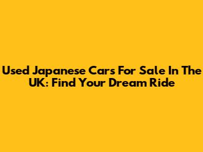 Used Japanese Cars For Sale In The UK: Find Your Dream Ride