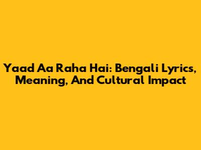 Yaad Aa Raha Hai: Bengali Lyrics, Meaning, And Cultural Impact