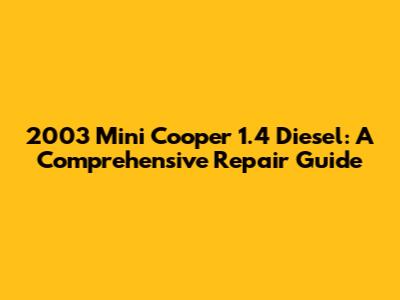 Understanding Your 2003 Mini Cooper 1.4 Diesel