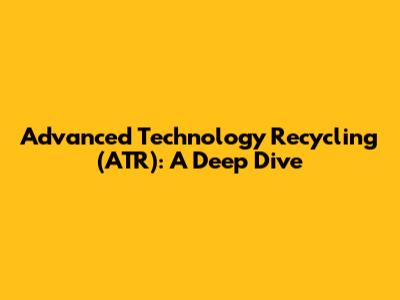 Advanced Technology Recycling (ATR): A Deep Dive