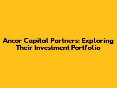 Ancor Capital Partners: Exploring Their Investment Portfolio