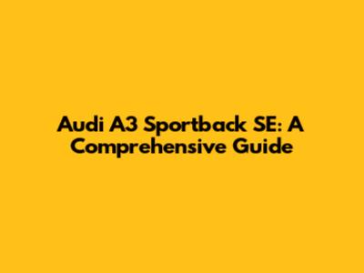 Audi A3 Sportback SE: A Comprehensive Guide