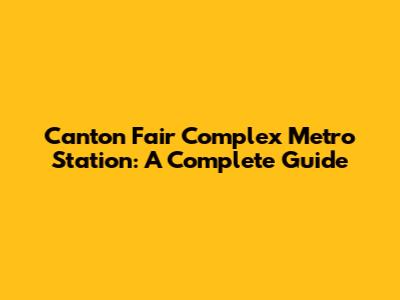 Canton Fair Complex Metro Station: A Complete Guide