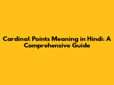 Cardinal Points Meaning In Hindi: A Comprehensive Guide