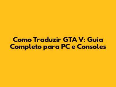 Como Traduzir GTA V: Guia Completo Para PC E Consoles