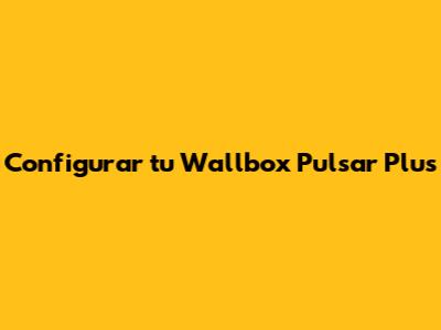 Configurar Tu Wallbox Pulsar Plus