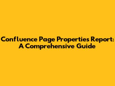 Confluence Page Properties Report: A Comprehensive Guide