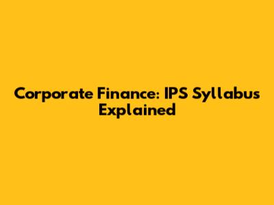 Corporate Finance: IPS Syllabus Explained