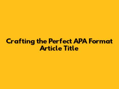 Crafting The Perfect APA Format Article Title