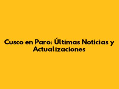 Cusco En Paro: Últimas Noticias Y Actualizaciones