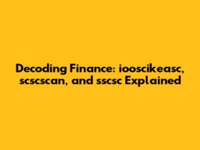 Hey guys! Ever stumbled upon some financial terms that sound like they're straight out of a sci-fi movie? Today, we're diving deep into the cryptic world of "iooscikeasc finance scscscan sscsc." Okay, I know, it looks like a keyboard smash, but let’s break it down and turn this gibberish into something actually understandable and useful. Whether you're a seasoned investor or just starting to dip your toes into the financial waters, this guide is for you. We’ll explore what these terms might represent or allude to in the broader context of finance, and arm you with the knowledge to navigate similar jargon with confidence. Let's get started!