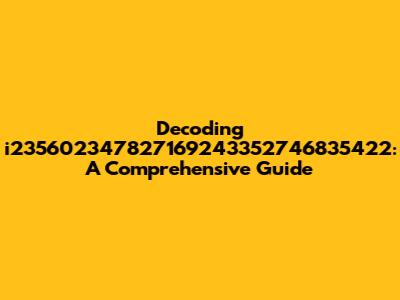 Decoding I235602347827169243352746835422: A Comprehensive Guide