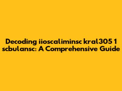 Decoding Iioscaliminsc Kral305 1 Scbulansc: A Comprehensive Guide