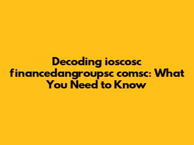 Decoding Ioscosc Financedangroupsc Comsc: What You Need To Know