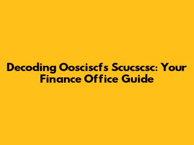 Decoding Oosciscfs Scucscsc: Your Finance Office Guide