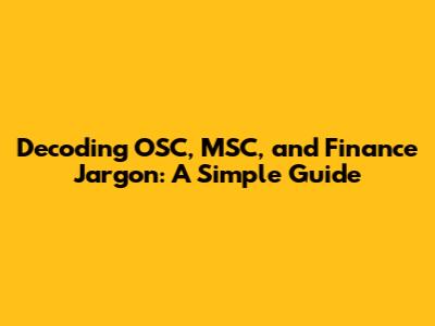 Decoding OSC, MSC, And Finance Jargon: A Simple Guide