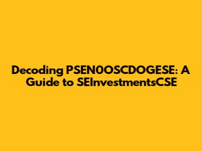 Decoding PSEN0OSCDOGESE: A Guide To SEInvestmentsCSE