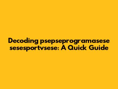 Decoding 'psepseprogramasese Sesesportvsese': A Quick Guide