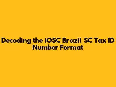In this article, we will delve into the specifics of the iOSC Brazil SC Tax ID number format, offering clarity and practical guidance. We will break down the components of the number, explain its significance, and provide tips for accurate validation. By the end of this guide, you will have a solid understanding of how to interpret and use this crucial identifier effectively.