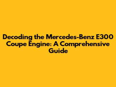 Decoding The Mercedes-Benz E300 Coupe Engine: A Comprehensive Guide