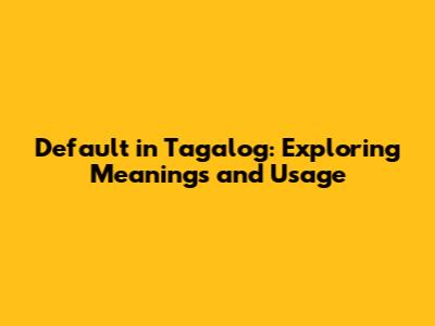 Default In Tagalog: Meanings And Usage Guide