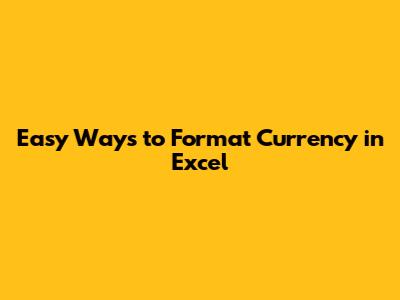 Easy Ways To Format Currency In Excel