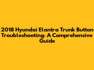 Troubleshooting a non-working trunk button on your 2018 Hyundai Elantra might seem daunting, but with a systematic approach, you can often identify and fix the problem yourself. Remember to start with the simplest solutions, like checking the fuse and battery, and then move on to more complex components like the button, wiring, and actuator. If you're not comfortable working on your car's electrical system, don't hesitate to seek professional help. By following these steps, you'll have your trunk popping open smoothly in no time! Good luck, and happy wrenching!