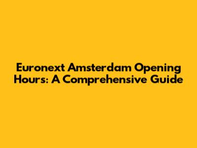 Euronext Amsterdam Opening Hours: A Comprehensive Guide