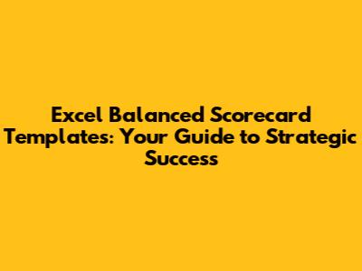 Excel Balanced Scorecard Templates: Your Guide To Strategic Success