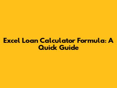 Excel Loan Calculator Formula: A Quick Guide