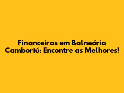 Financeiras Em Balneário Camboriú: Encontre As Melhores!