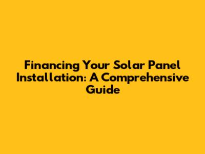 Financing Your Solar Panel Installation: A Comprehensive Guide