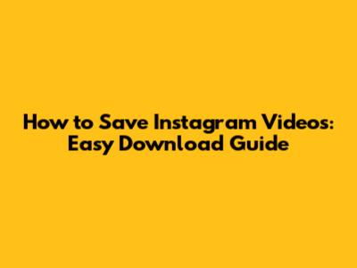 How To Save Instagram Videos: Easy Download Guide
