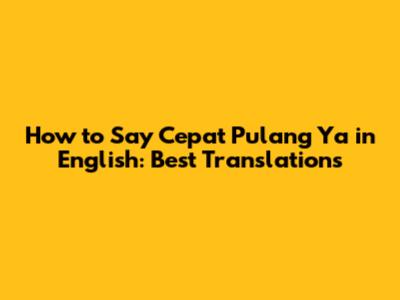 How To Say Cepat Pulang Ya In English: Best Translations