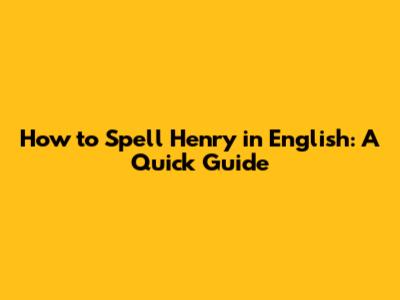 How To Spell Henry In English: A Quick Guide
