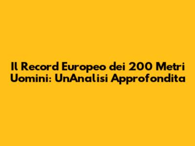Il Record Europeo Dei 200 Metri Uomini: Storia, Campioni E Analisi