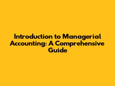 Introduction To Managerial Accounting: A Comprehensive Guide