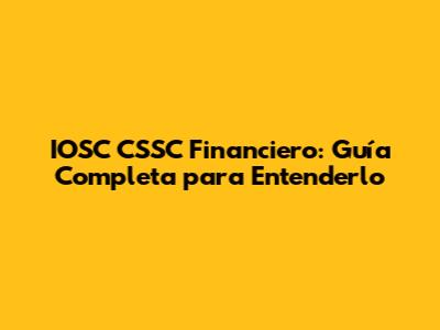 IOSC CSSC Financiero: Guía Completa Para Entenderlo