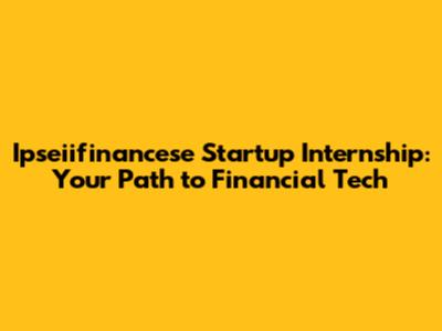 Ipseiifinancese Startup Internship: Your Path To Financial Tech