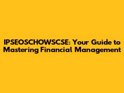IPSEOSCHOWSCSE: Your Guide To Mastering Financial Management