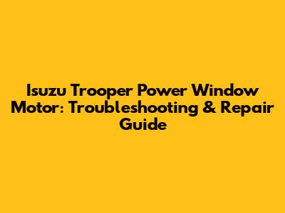 Isuzu Trooper Power Window Motor: Troubleshooting & Repair