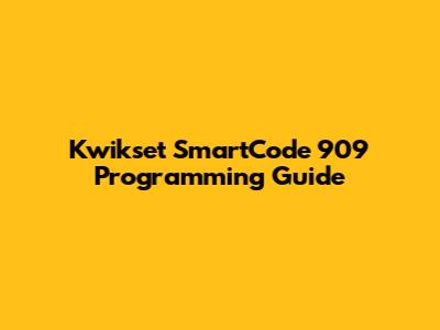 Kwikset SmartCode 909: Programming Guide