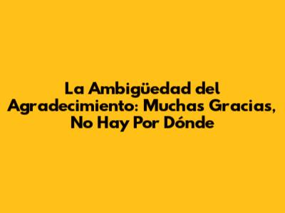 La Ambigüedad Del Agradecimiento: Muchas Gracias, No Hay Por Dónde