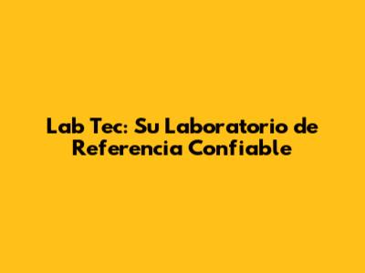 Lab Tec: Su Laboratorio De Referencia Confiable