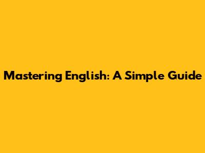 Mastering English: A Simple Guide