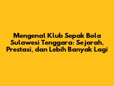 Mengenal Klub Sepak Bola Sulawesi Tenggara: Sejarah, Prestasi, Dan Lebih Banyak Lagi