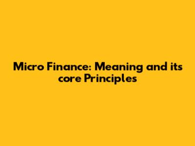 Micro Finance: Meaning And Its Core Principles