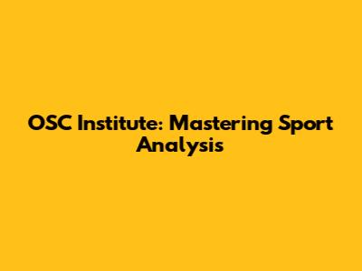 OSC Institute: Mastering Sport Analysis